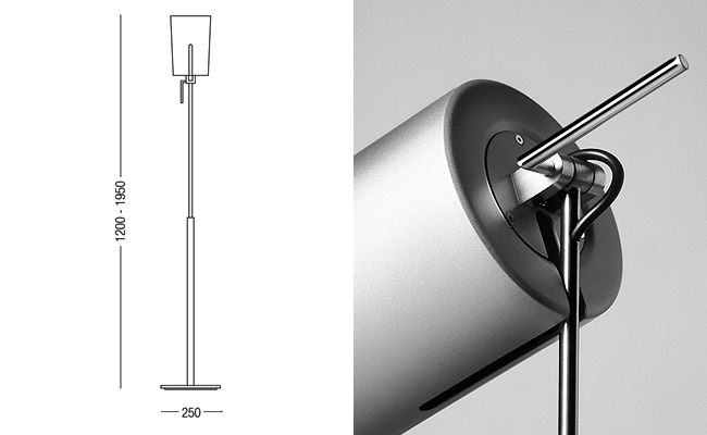 Свет → Светильники → ANTA → Tuba Торшер. Цвет - лакированный алюминий или белая лакировка. Регулируемый по высоте. Абажур поворачивается и вращается. Напряжение 230 В. Освещение - лампа макс. 75 Вт цоколь Е27.