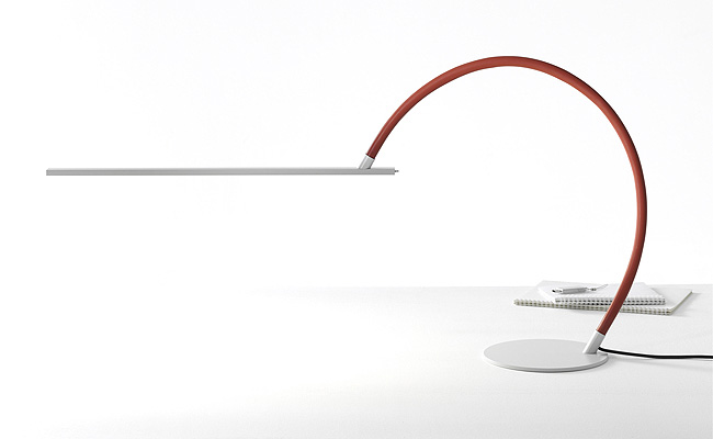 Свет → Светильники → ANTA → Line Новая настольная лампа. Тонкий абажур длиной 60 см содержит 6 мощных светодиодов, которые дают световой поток 500 люмен, потребляя при этом 7 Вт. Соединительная штанга длиной 90 см гибкая и может принимать различные формы. Цвет у штанги или светло-серый или кирпично-красный. Устойчивость лампе придает солидное стальное основание диаметром 21 см. Выключатель расположен в головной части. .