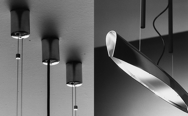 Свет → Светильники → ANTA → Nil Подвесной светильник. Металлические части - алюминий слегка матовый. Ступенчатая регулировка по высоте с помощью противовесов. Напряжение 230 В. Освещение - 2 галогенные лампы макс. по 100 Вт R7s. Подходит для высоты потолка до 3 м. По заказу возможна специальная длина и прозрачный кабель.
