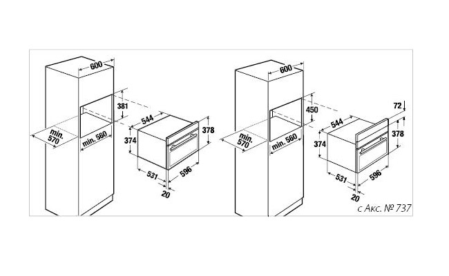 - Размеры ниши для встраивания Ш х В x Г ≈ 560 х 380 x 550 мм