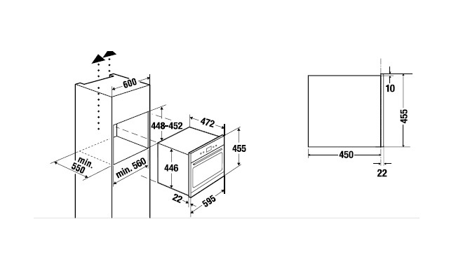 - Размеры ниши для встраивания Ш x В x Г ≈ 560 x 450 x 550 мм