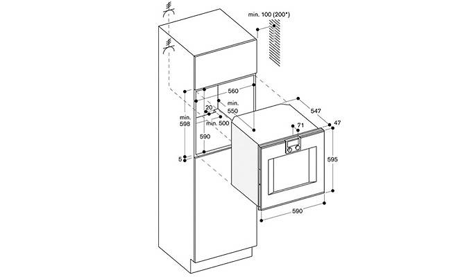 2 х 10 Вт галогенные лампы по бокам духовки.