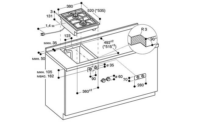 – Для установки внакладку на столешницу или на одном уровне со столешницей.