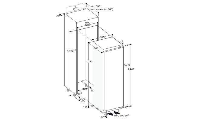Возможность встраивания с морозильником RF 287 в комбинации Side-by-Side