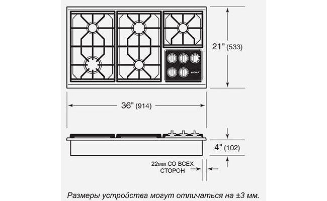 Газовая варочная панель 914 мм, из нержавеющей стали.