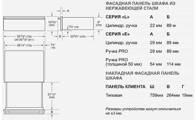 Передняя панель духового шкафа 762 мм - интегрирована (кроме отделочной панели)