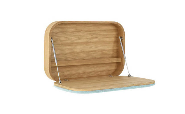 Как и в случае письменного стола-купола REWRITE (2011) и стола-корзины для пикника PICNIC (2012), основой дизайна секретера NUBO является эффект удивления от встречи уже привычных объектов с новой неожиданной идеей: простой, компактный откидной столик превращается в полезный ящик, дизайн которого напоминает маленький округлый чемодан, использовавшийся авиакомпаниями в 60-х годах. Форма напоминает маленькое круглое облако, а сочетание натурального дуба и светло-голубой шерсти становятся репликой скандинавского винтажного стиля.