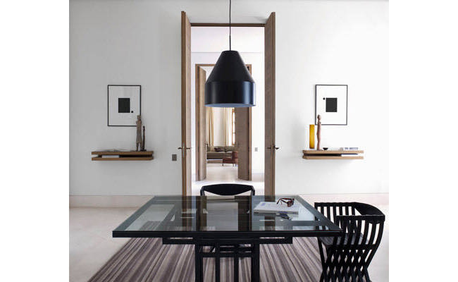 Свет → Светильники → Ligne Roset → 63 Подвесной светильник. Сдержанный классический образ. Абажур - из алюминия, черный лак снаружи, небесно-голубой внутри. Провод из черного нейлона.
