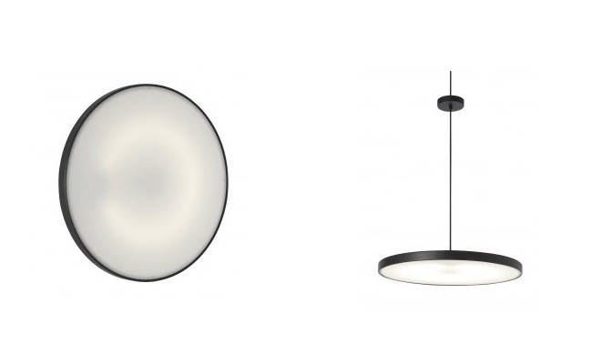Плоские и чрезвычайно простые по форме бра и потолочный светильник, а также подвесной светильник от французского дизайнера Томаса Родригеса.