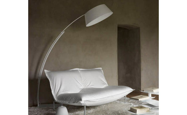 Свет → Светильники → Ligne Roset → Ouverture Новый напольный торшер с выдвижным кронштейном, лакированным в черный или белый цвет с тканевым абажуром того же цвета.