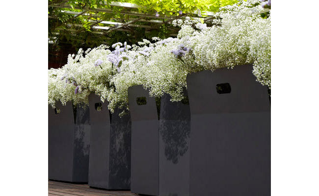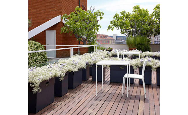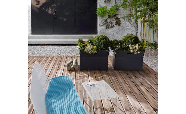 Ящики для растений из оцинкованной стали с порошковым покрытием цвета антрацит и удобными ручками.