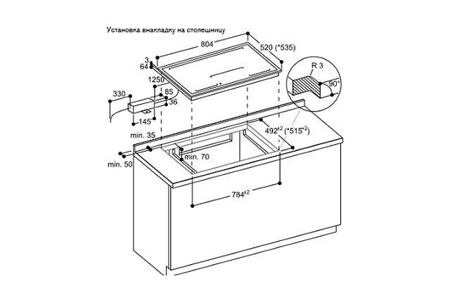 - Возможность объединения прямоугольных конфорок в зону flex induction