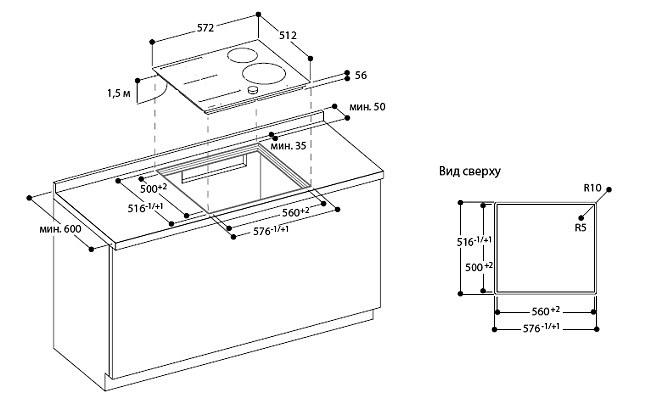 2 комбинируемые индукционные конфорки 19 x 23 см (2200 Вт, с функцией Booster 3700 Вт), при совмещении 38 x 23 см (3300 Вт, с функцией Booster 3700 Вт). Управление.