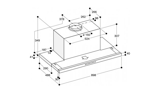 Запатентованная занижающая рама позволяет вытяжке полностью встраиваться в подвесной шкаф.