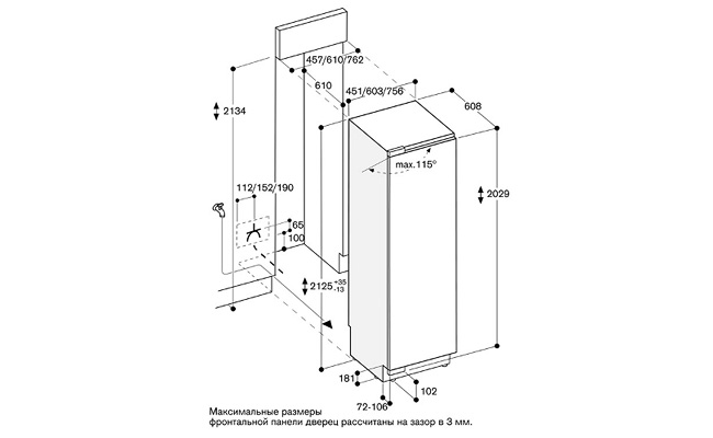 Встроено в морозильное отделение, с системой постоянной подачи воды. Технические параметры.