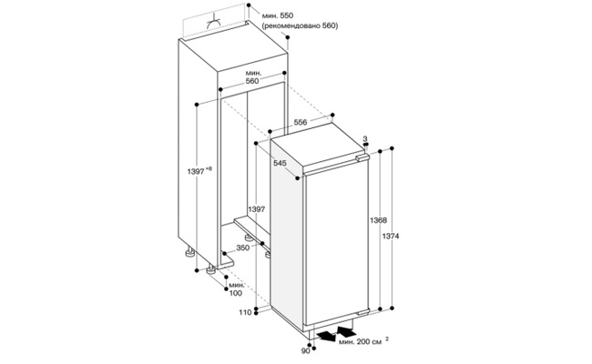 Увеличенное внутреннее пространство с полезным объёмом в 214л , благодаря специальному расположению компрессора.