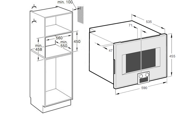 BS-455 110 - ширина 60 см, панель управления внизу, с навеской двери слева, нержавеющая сталь под стеклом.