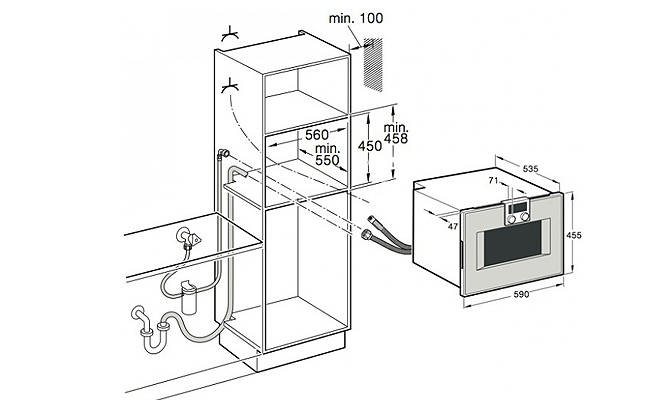 BS-470 111 - ширина 60 см, панель управления сверху, с навеской двери справа, нержавеющая сталь под стеклом.