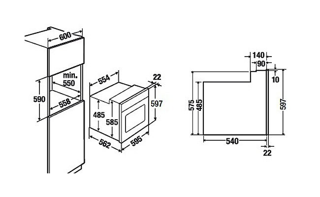 - Размеры ниши для встраивания ш x В x Г ≈ 560 x 590 x 550 мм