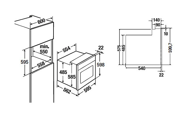 - Размеры ниши для встраивания Ш x В x Г ≈ 560 x 590 x 550 мм