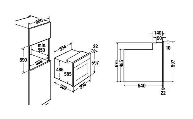 - Размеры ниши для встраивания Ш x В x Г ≈ 560 x 590 x 550 мм