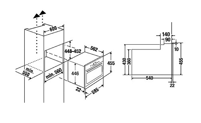 - Размеры ниши для встраивания Ш х Г x В ≈ 560 х 450 x 550 мм