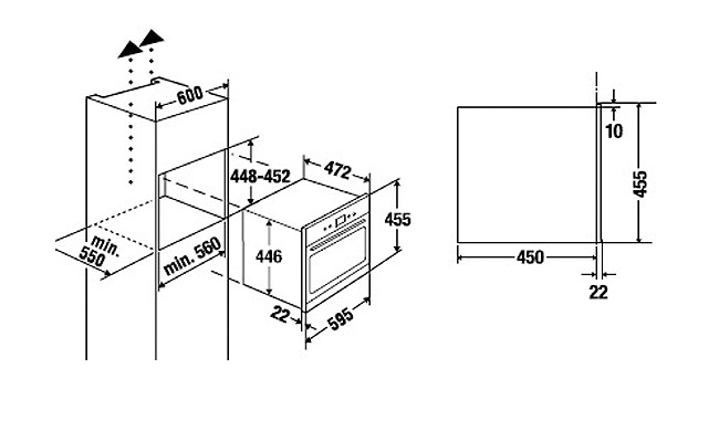 - Размеры ниши для встраивания Ш х Г x В ≈ 560 х 450 x 550 мм
