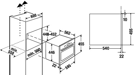 - Размеры прибора Ш х В х Г ≈ 595 х 455 х 562 мм (вкл. фасад 22мм)