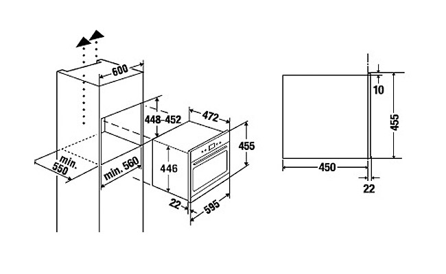 - Размеры ниши для встраивания Ш х В x Г ≈ 560 х 450 x 550 мм