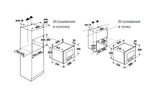 - Размеры ниши для встраивания Ш х В x Г ≈ 568 х 370 x 320 мм (полка)