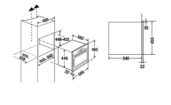 - Размеры прибора Ш х В х Г ≈ 595 х 455 х 562 мм (в т.ч. фасад 22мм)