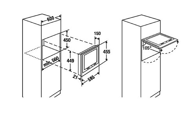 - Размеры ниши для встраивания Ш х Г x В ≈ 560 х 450 x 200 мм