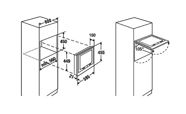 - Размеры ниши для встраивания Ш х Г x В ≈ 560 х 450 x 200 мм