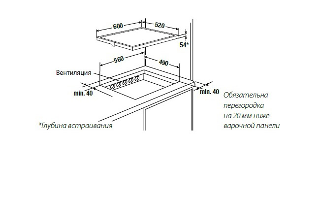 - Размеры ниши для встраивания Ш х Г ≈ 560 х 490 мм.