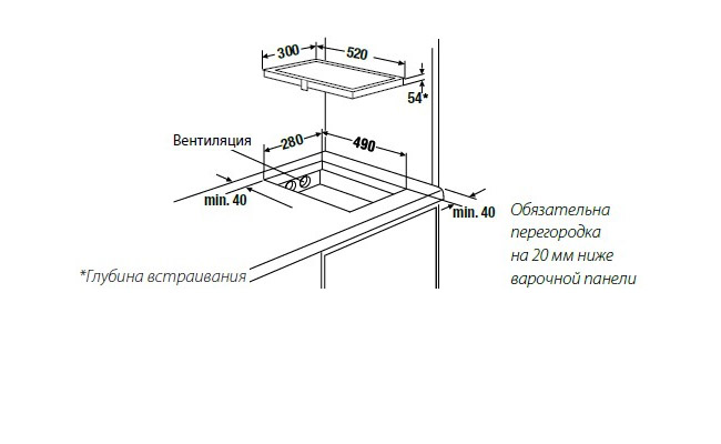 - Размеры ниши для встраивания Ш х Г ≈ 280 х 490 мм.