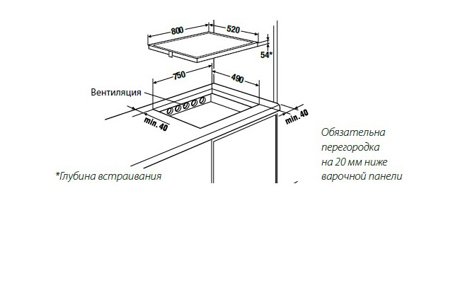 - Размеры ниши для встраивания Ш х Г ≈ 750 х 490 мм.