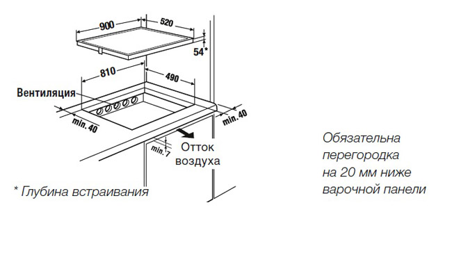 - Размеры ниши для встраивания Ш х Г ≈ 810 х 490 мм.