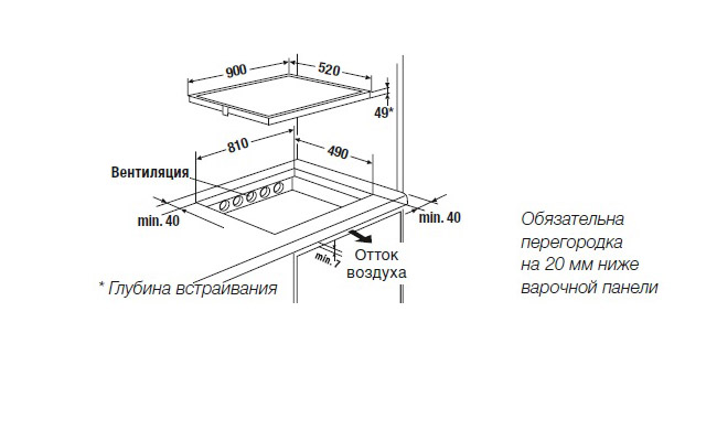 - Размеры ниши для встраивания Ш х Г ≈ 810 х 490 мм.