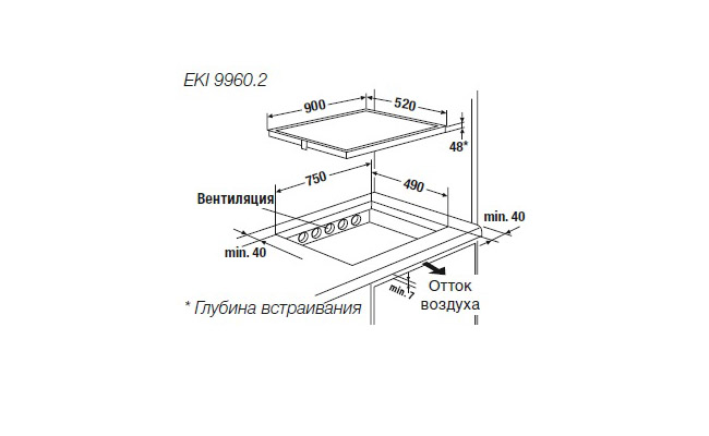 - Размеры ниши для встраивания Ш х Г ≈ 750 х 490 мм