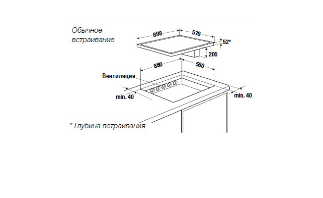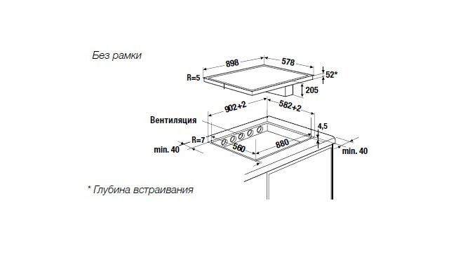 - Размеры ниши для встраивания Ш х В х Г ≈ 880 х 560 мм