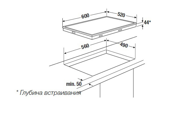 - Размеры ниши для встраивания Ш х Г ≈ 560 х 490 мм.