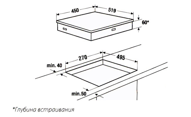 - Размеры ниши для встраивания Ш x Г ≈ 270 x 495 мм.