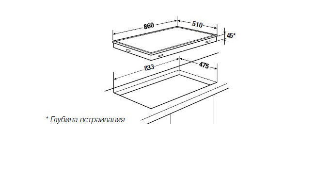 - Размеры ниши для встраивания Ш х Г ≈ 833 х 475 мм