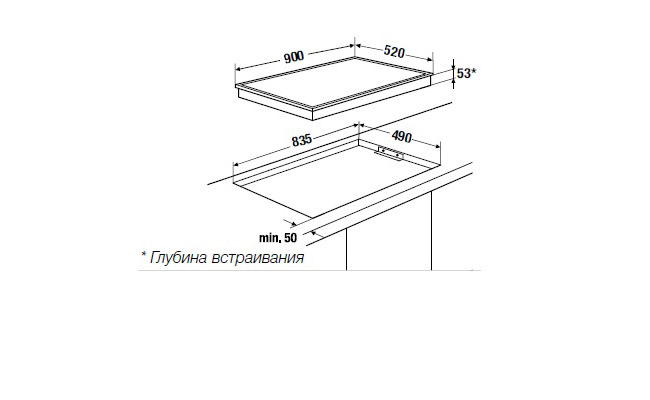 - Размеры ниши для встраивания Ш х Г ≈ 835 х 490 мм.