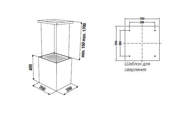 - Размеры прибора Ш x В x Г ≈ 350 x 600-2.150 x 350 мм
