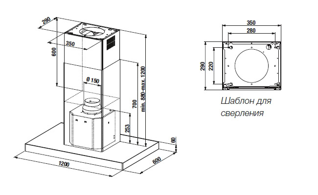- Производительность (при работе на отвод воздуха) согласно директиве 2010/30/EU: макс. обычный уровень мощности - 530 м³/ч, интенсивный режим - 660 м³/ч