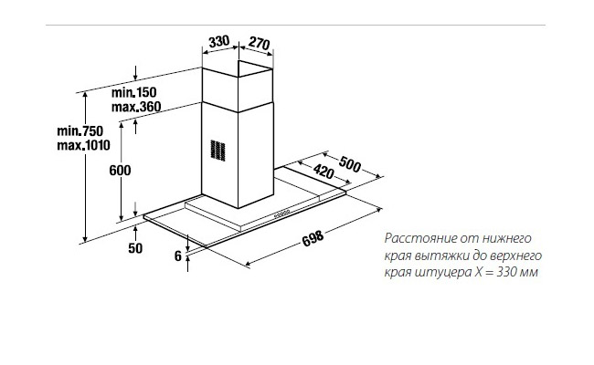 - Размеры прибора Ш х В x Г ≈ 698 х 750-1.010 x 500 мм