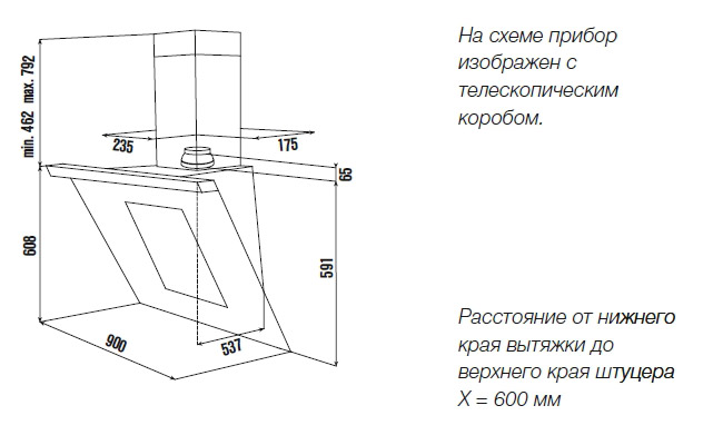 - Размеры прибора Ш х В x Г ≈ 900 х 608 x 537 мм (без телескопического короба)