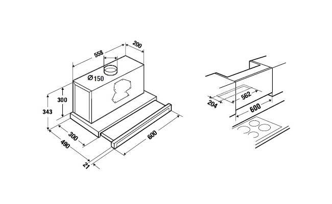- Размеры ниши для встраивания Ш х В х Г ≈ 600 х 380 х 300 мм