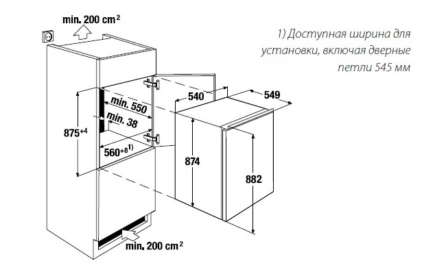 - Размеры ниши для встраивания Ш x В x Г ≈ 560 x 875 x 550 мм.